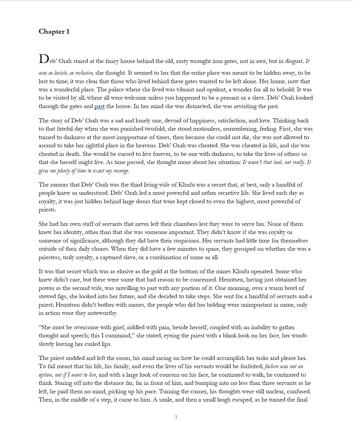 This page is built to show the novels as written objects — title pages, table of contents pages, opening material, and selected internal pages presented in a direct visual order.