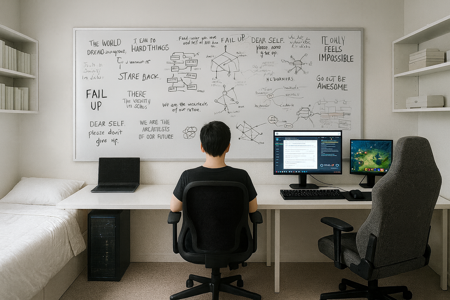 - The White Room: In a stark white bedroom that looks more like a lab, Claire disappears into screens and encrypted tunnels. The dark web is the only place she feels seen, feeding Sami just enough truth to keep her alive — and aimed at something worse.